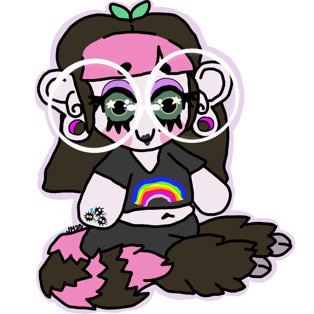 Pynk is a thick creature. Shortstack-- heavy cow udder like breasts, chubby tummy, wide hips & thick thighs.