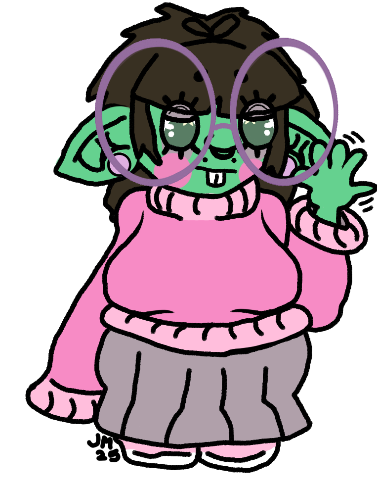 Pynk is a thick creature. Shortstack-- heavy cow udder like breasts, chubby tummy, wide hips & thick thighs.
